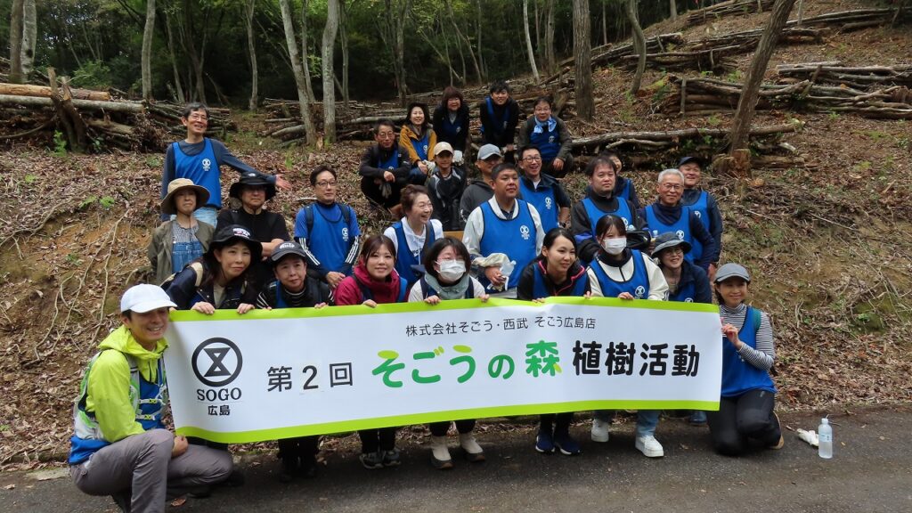 「そごうの森」は、東広島市福富町にて森林整備や里山資源の利活用を目的とした活動で、そごう広島店は東広島市と「森林(もり)づくりパートナー協定」を締結しています。