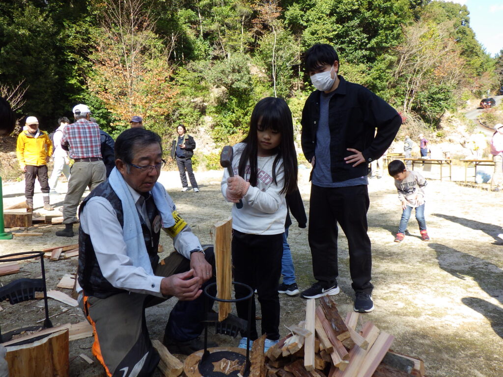薪割り機を使った薪割り体験も行いました!