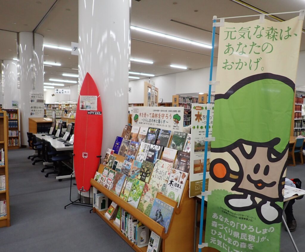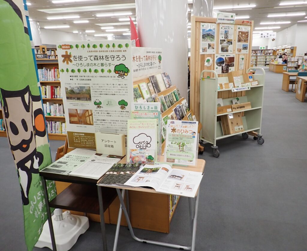 県立図書館との連携資料展示を行っています!「木を使って森林を守ろう ~ひろしまの木と暮らす~」