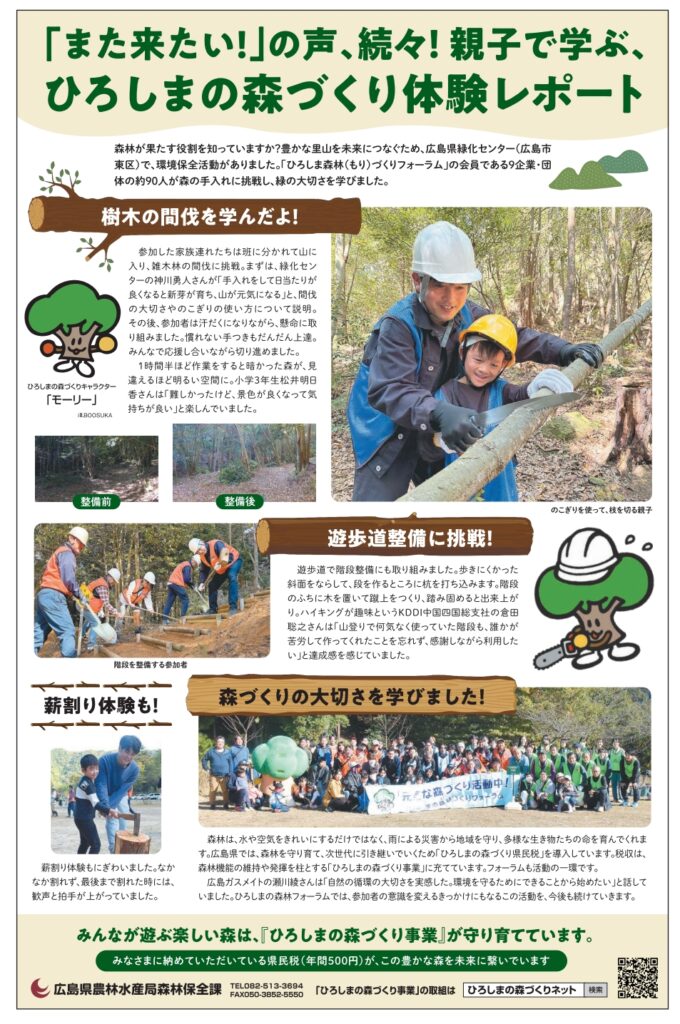 11月15日(土)に広島県緑化センターで開催された令和7年度「フォーラムの森」森林保全活動を、フリーペーパー『アシタノ』の特集ページでご紹介いただきました。
